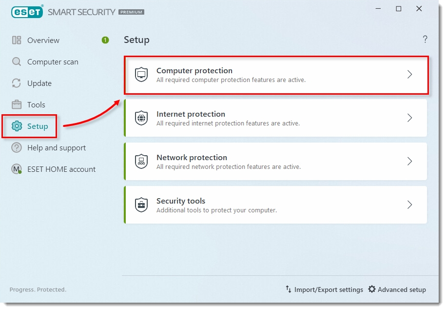 Cliquez sur Configuration -> Protection de l’ordinateur