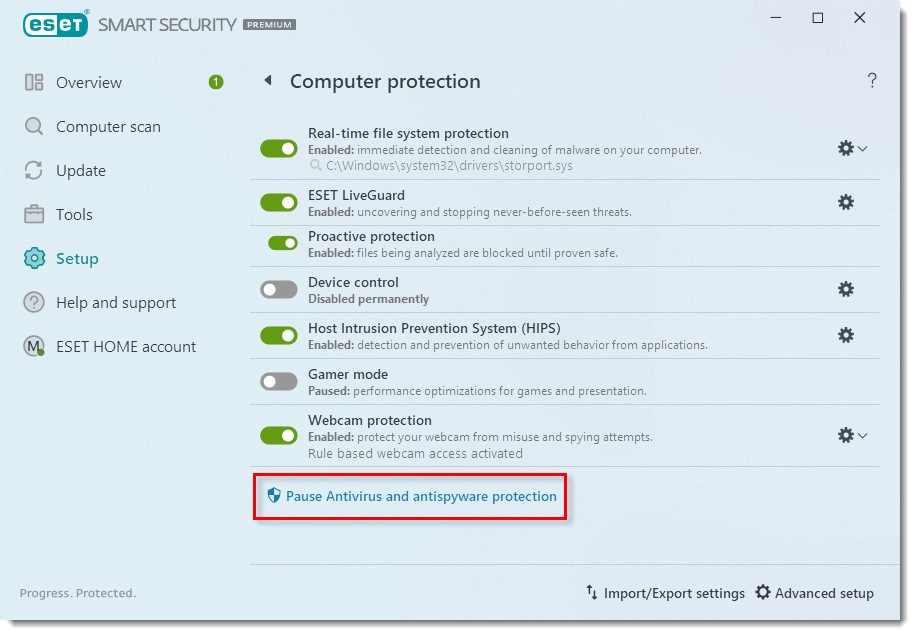 Cliquez sur Mettre en pause l’antivirus et la protection anti-espionnage