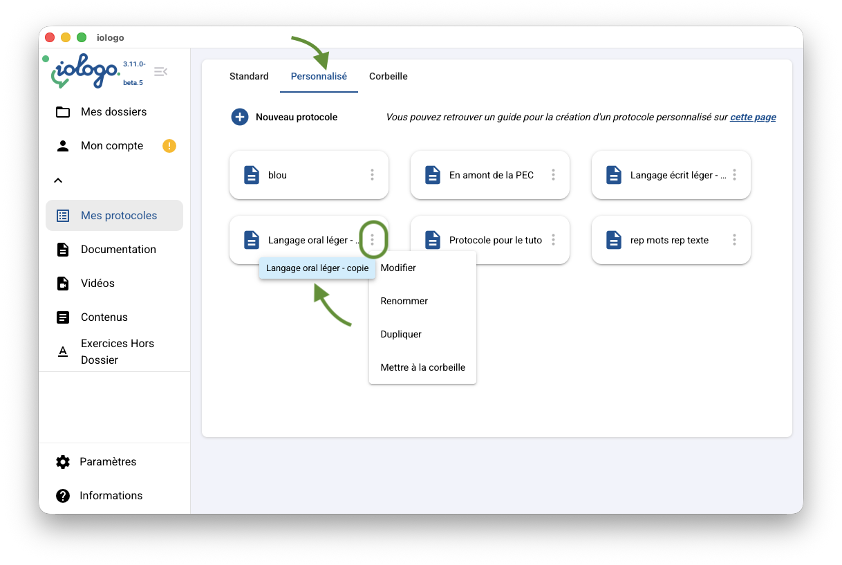 Découvrez ici comment créer des protocoles personnalisés que vous pourrez affecter ensuite aux patients