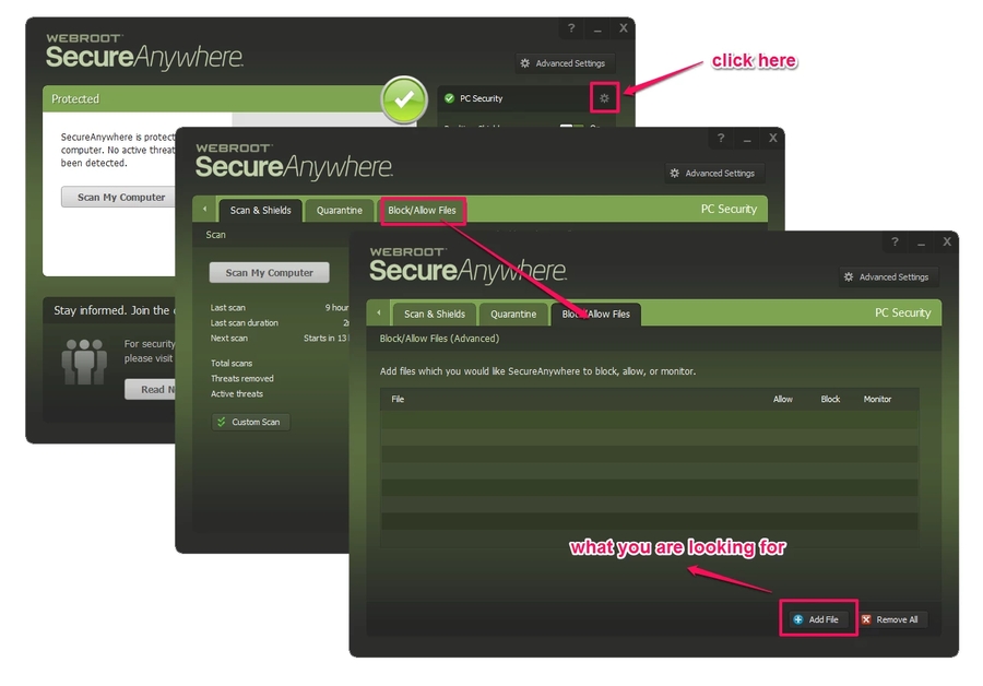 Ci-dessous une liste de tutoriels en fonction des principaux antivirus vous indiquant pas à pas comment effectuer ces méthodes. Si vous ne trouvez pas le nom de celui installé sur votre machine une simple recherche internet devrait vous suffire à trouver un tutoriel (i.e. « Comment déclarer une exception sur NomAntivirus »).